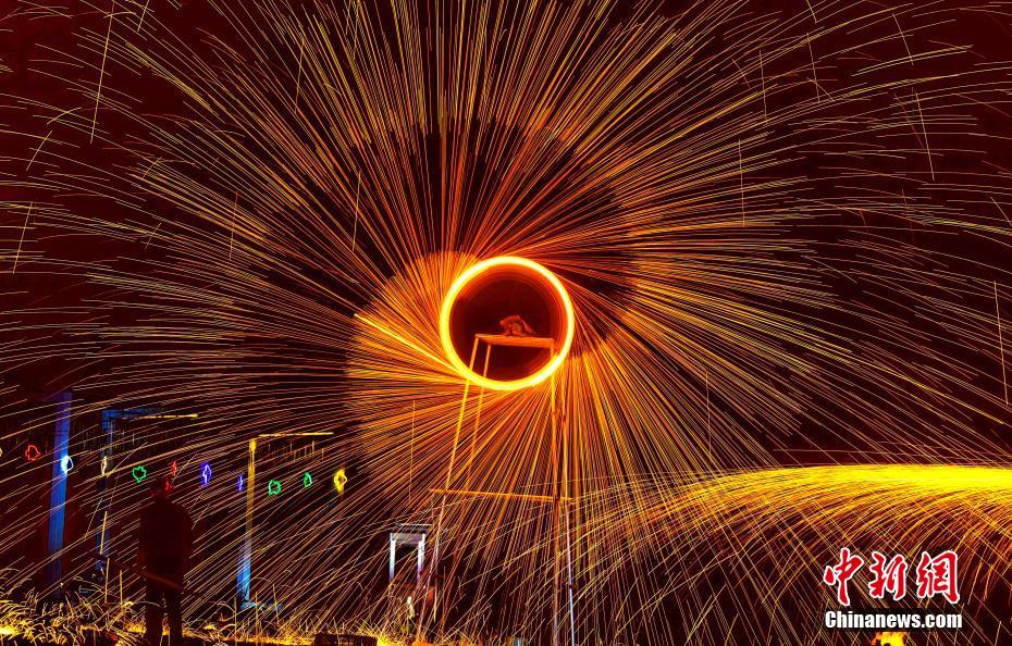 北方非遗文化“打铁花”绽放南方夜空。赵春亮 摄