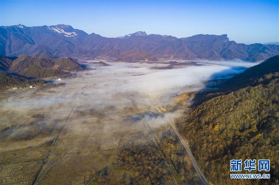 神农架大九湖风光(2017年11月8日无人机拍摄)。 新华社记者 杜华举 摄
