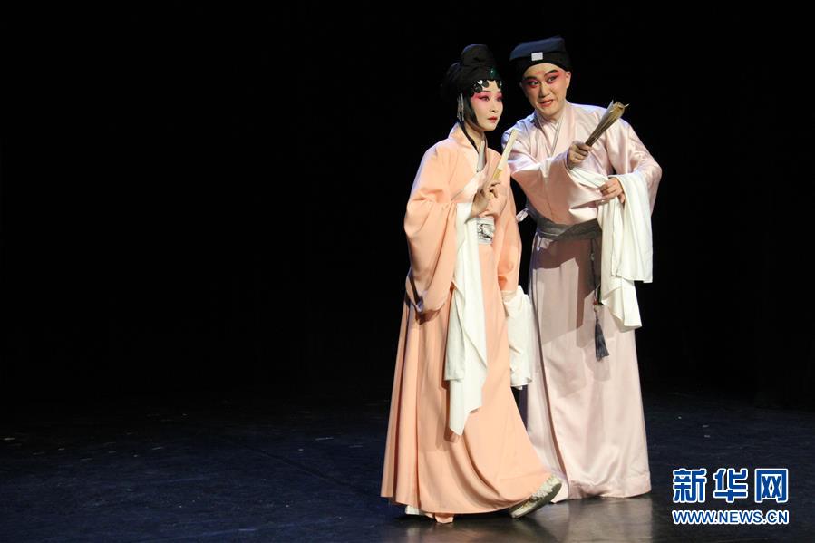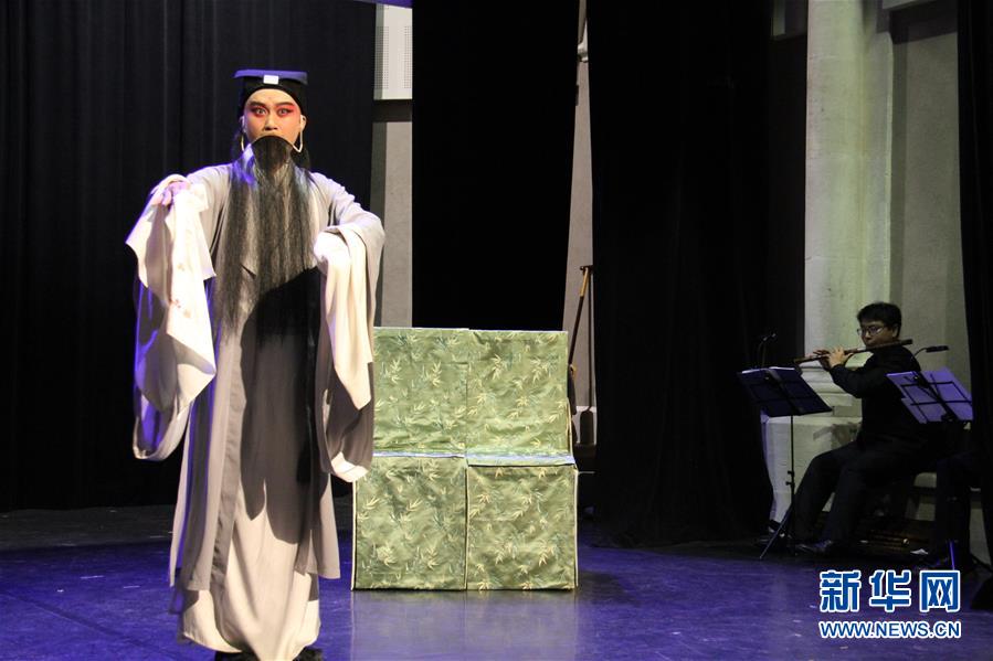 7月7日,在法国阿维尼翁,演员表演新编昆曲《浮生六记》。 当日,在法国阿维尼翁戏剧节的舞台上,聚光灯下的一桌两椅与演员的颦笑招式之间,传统苏州市井生活图景得以再现。当天,来自江苏省苏州昆剧院的《浮生六记》,向法国观众展现了中国传统戏曲的独特魅力。 新华社记者 杨一苗 摄