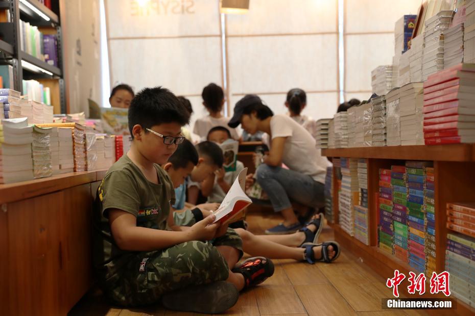 7月8日,孩子们在银川市西西弗书店内阅读书籍。暑期,不少中小学生“泡”在书店中,用阅读来充实自己的暑期生活。中新社记者 于晶 摄