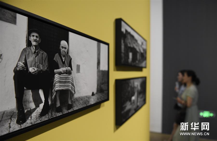 7月6日,观众在观看布鲁诺·赫基亚拍摄于葡萄牙的三幅作品。 新华社记者 李尕 摄