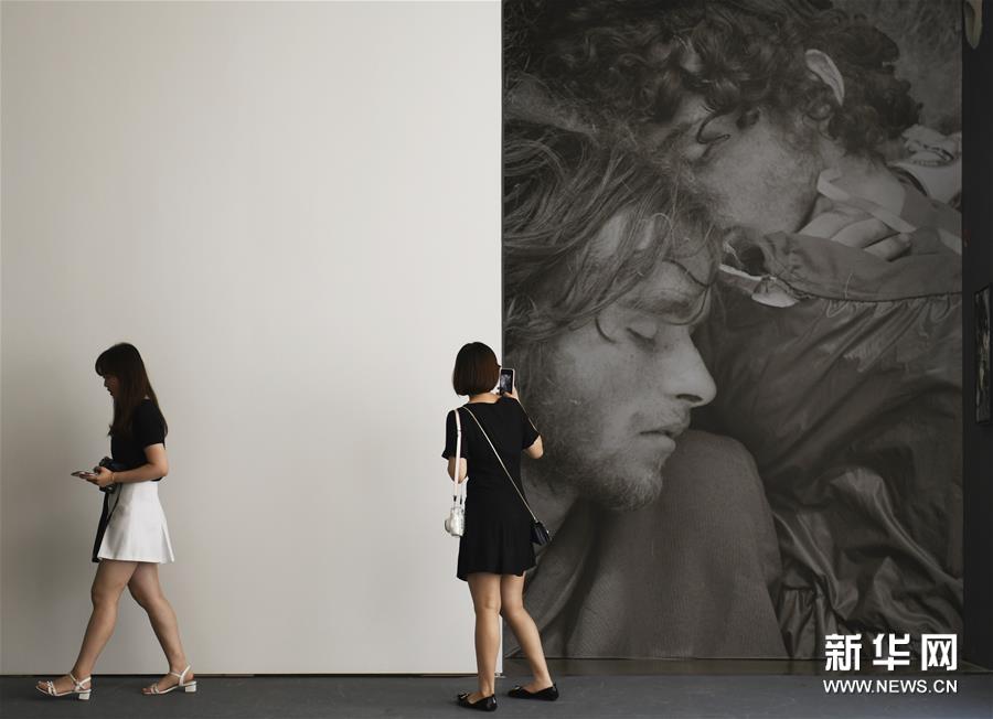 7月6日,观众在观看布鲁诺·赫基亚于1970年拍摄于英国怀特岛音乐节的作品。新华社记者 李尕 摄