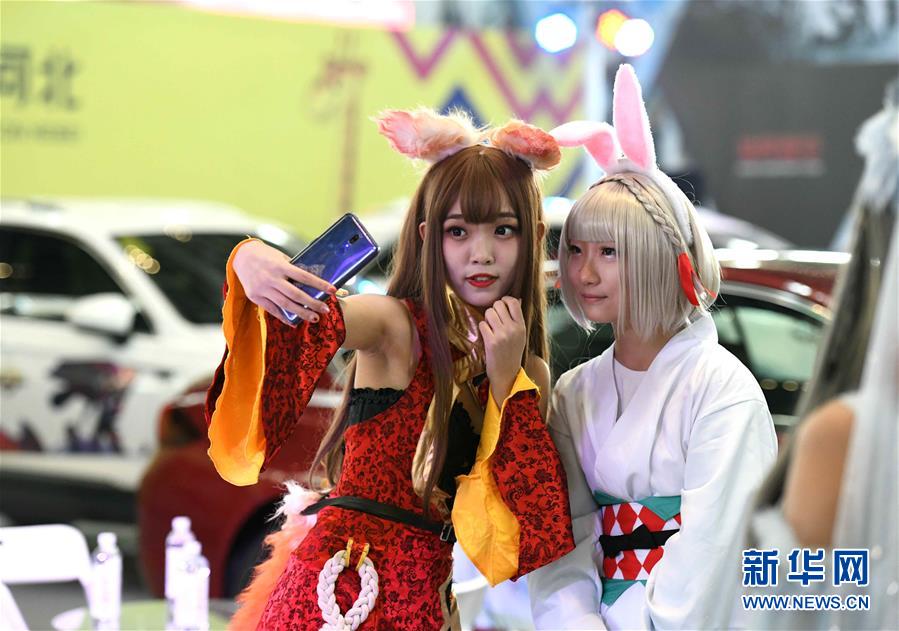 7月12日,动漫爱好者在自拍。新华社发(刘沛然 摄)