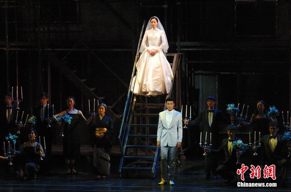 7月13日晚,由韩雪、刘令飞领衔主演,改编自日本作家东野圭吾同名推理小说的音乐剧《白夜行》在天津大剧院上演。中新社记者 佟郁 摄