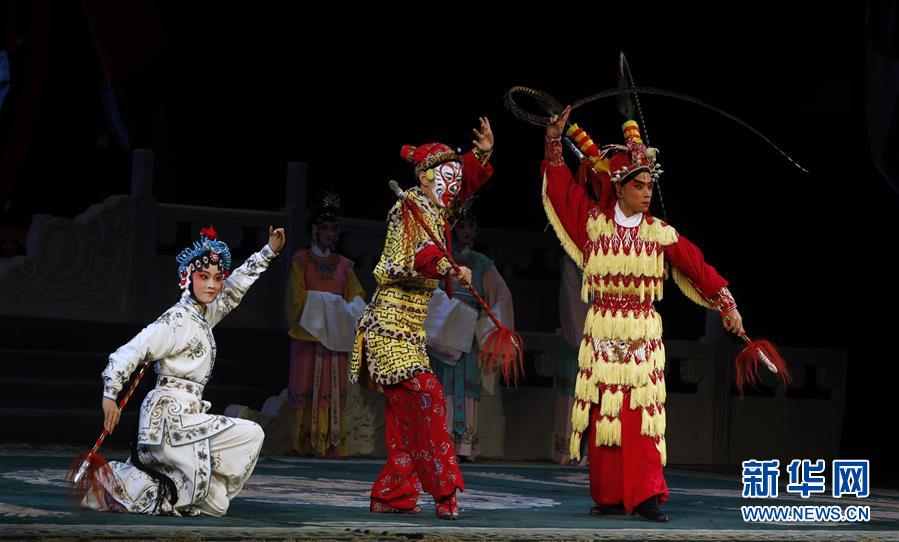 7月15日晚,演员在第十四届全国高校京剧演唱会开幕式上表演戏曲选段。新华社发(张智敏 摄)
