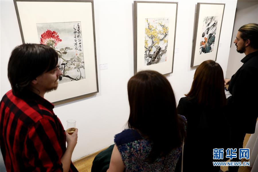 7月15日,在波黑首都萨拉热窝,人们在“水墨情怀—中国国家画院水墨艺术展”上观看作品。 “水墨情怀—中国国家画院水墨艺术展”15日在波黑国家艺术馆揭幕,60幅山水花鸟及人物画作品吸引了萨拉热窝各界人士前来观看。 新华社发(内迪姆·格拉博维察摄)