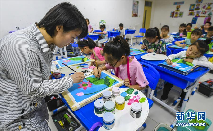 7月17日,孩子们在河北省大厂回族自治县青少年校外活动中心的暑期兴趣特色培训班学习水粉画。 正值暑期,河北省大厂回族自治县青少年校外活动中心举办“多彩生活 乐享暑假”暑期系列公益活动,开设茶艺、绘画、乒乓球等十多个兴趣特色培训班,丰富少年儿童暑期生活。 新华社记者 李晓果 摄