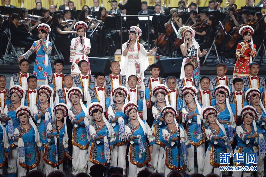 7月17日,在昆明云南大剧院,演员在开幕式上表演民族合唱《苍山歌声永不落》。 当日,第六届中国聂耳音乐(合唱)周在云南开幕。本届音乐周以“礼赞新中国·奋进新时代”为主题,将在昆明、玉溪两地推出一系列丰富多彩的活动。 新华社记者秦晴摄