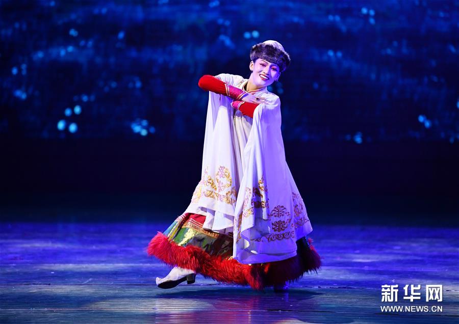 7月17日,演员在表演《冬趣儿》。 7月17日晚,“我们从草原来”——甘肃肃北乌兰牧骑歌舞演出在陕西西安人民剧院举行。 新华社记者 张博文 摄