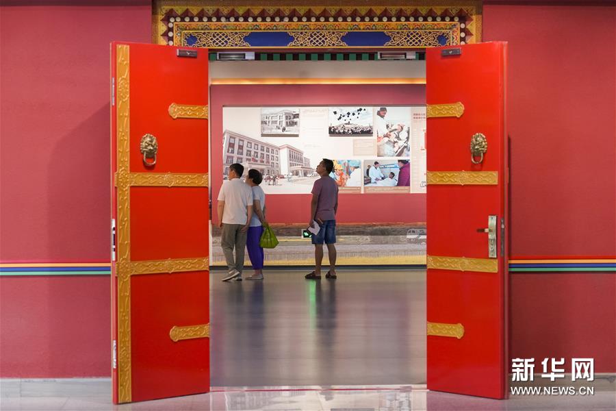 7月18日,参观者在“废奴丰碑——西藏民主改革60周年特展”上观看展品。 目前,“废奴丰碑——西藏民主改革60周年特展”在北京西藏文化博物馆举行,吸引不少观众前往参观。 该展览由中国西藏文化保护与发展协会、中国藏学研究中心和西藏自治区党委宣传部共同主办,免费向社会开放,将持续至12月底。 新华社记者 沈伯韩 摄