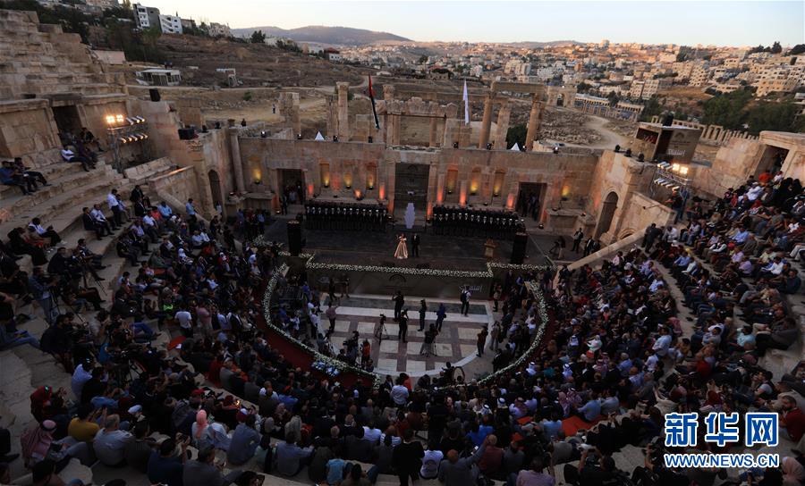 7月18日,在约旦杰拉什,人们在开幕式上观看演出。新华社发(穆罕默德·阿布·高希 摄)