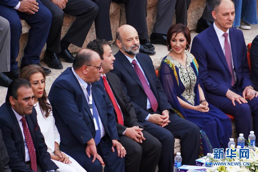 7月18日,在约旦杰拉什,约旦首相奥马尔·拉扎兹(右三)出席开幕式。新华社记者 林晓蔚 摄