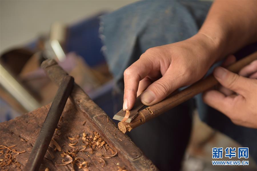 7月19日,在青岛即墨区金口镇店集南里村,孙连勇在工作室切削杆头。 杆秤是一种历史悠久的称重工具,曾经因其携带便捷、成本低廉而广受生意人的喜爱。上世纪90年代初,随着市场经济的发展,人们对杆秤的需求量大增,青岛即墨地区一度涌现了近30家杆秤作坊。 即墨金口镇孙连勇家族的作坊便是其中之一。今年49岁的孙连勇是孙氏制秤手艺的第五代传人,是为数不多坚持到现在的手工制秤艺人。 孙连勇介绍说,制作一根杆秤,需要经过选材、打磨、包秤头、装提纽、校秤定星、分斤两、镶秤星、二次打磨等工序。计量准确是制秤的基本要求,手工制秤技术含量高,一个微小的差错就可以让一杆秤报废。从事手工制秤30多年来,孙连勇已经制作了几万杆秤。 现在,随着电子秤的普及,传统杆秤逐渐淡出市场,制作杆秤的手工艺人越来越少。2017年以来,在即墨金口镇传统村落店集南里村美丽乡村建设项目的支持下,孙连勇得以在古村落传承和展示传统制秤手艺,不仅场地免租金,每个月还可以领到一些政府补助。 “在传统婚俗、旅游纪念、中药房等领域,杆秤还有一定的应用价值,希望这门传承了上百年的老手艺不会消失。”孙连勇说。 新华社记者 张善臣 摄