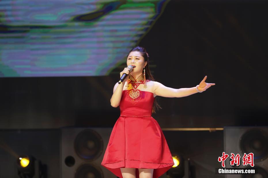 近日,由北京市文联组织的“共话京蒙情 同筑中国梦”2019首都艺术家赴内蒙古兴安盟文艺慰问演出成功举行。来自北京书法、美术、音乐、曲艺等门类的30余名艺术家走进乌兰浩特市乌兰牧骑宫、阿尔山市三角山哨所等地,为当地民众和边防官兵带来多场文艺演出和书画交流笔会。图为蒙古族女歌手乌兰娜为阿尔山市民众演唱歌曲。 中新社记者 贾天勇 摄