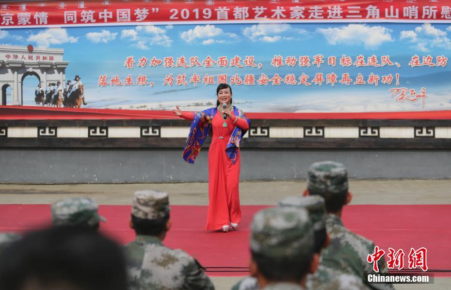 近日,由北京市文联组织的“共话京蒙情 同筑中国梦”2019首都艺术家赴内蒙古兴安盟文艺慰问演出成功举行。来自北京书法、美术、音乐、曲艺等门类的30余名艺术家走进乌兰浩特市乌兰牧骑宫、阿尔山市三角山哨所等地,为当地民众和边防官兵带来多场文艺演出和书画交流笔会。图为北京京剧院青衣名家王奕戈在三角山哨所为官兵演唱京剧。 中新社记者 贾天勇 摄