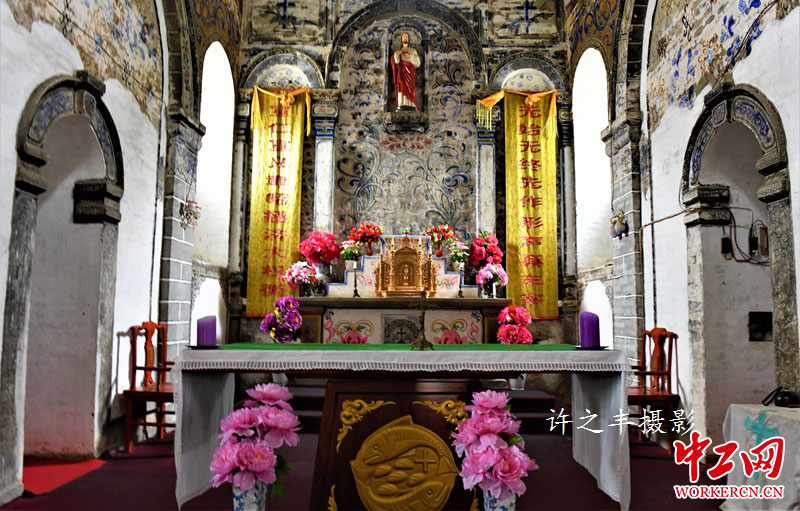 茨中教堂位于云南省德钦县燕门乡。始建于清同治六年(1867年),原在自菇村,法传教士主持兴建。光绪十八年(1892年)被焚毁,后于光绪二十六年(1900年)移至茨中重建。教堂包括大门、前院、圣堂、后院、果园、菜园、葡萄园、水田等,主体建筑坐西向东,为中西式结合的建筑。大门砖砌,似牌楼样式,三层,下作通道,上建攒尖顶亭阁,上置十字架。气派的教堂成为了“云南铎区”的主教礼堂。2006年05月被国务院批准列入全国重点文物。图为2019年7月11日燕门乡茨中教堂。工人日报-中工网许之丰摄影报道