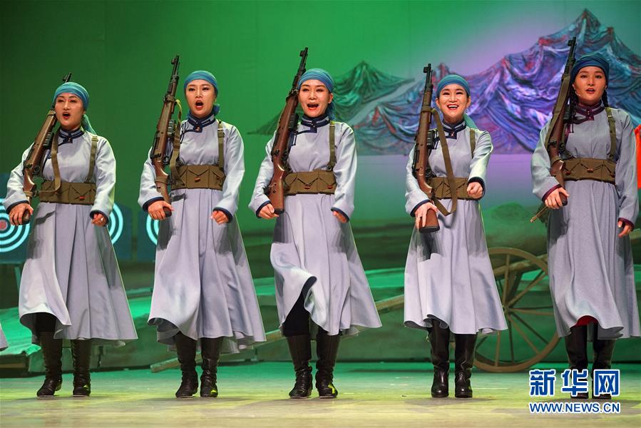 7月22日,在内蒙古苏尼特右旗,苏尼特右旗乌兰牧骑演员表演舞台剧“朱日和情”。