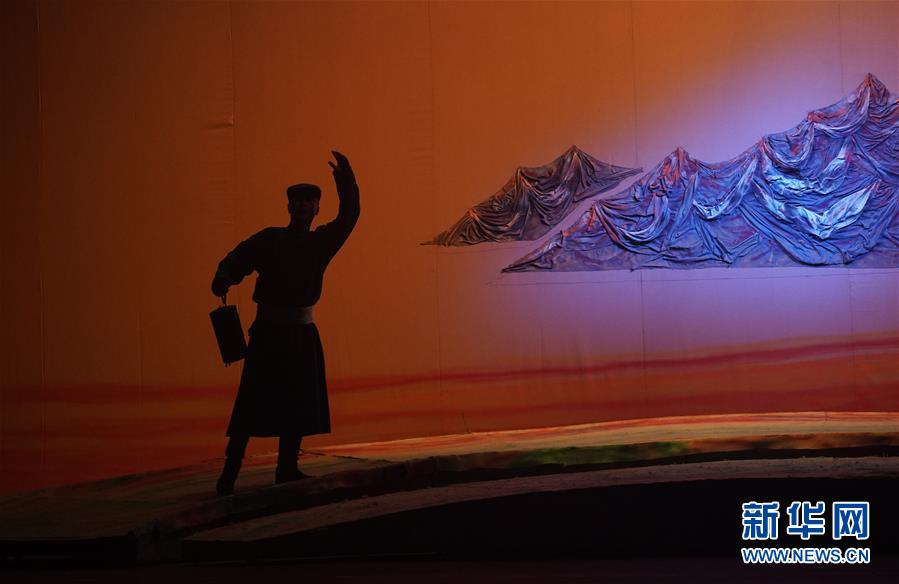 7月22日,在内蒙古苏尼特右旗,苏尼特右旗乌兰牧骑演员表演舞台剧“朱日和情”。新华社记者 才扬 摄