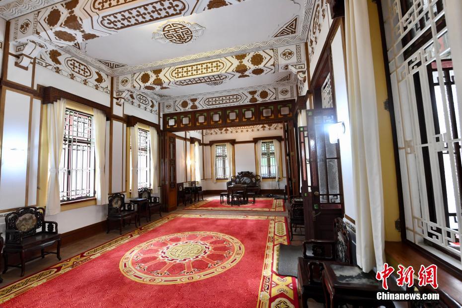 景贤里主楼的紫檀厅内家具摆放还原原有的样貌。中新社记者 李志华 摄