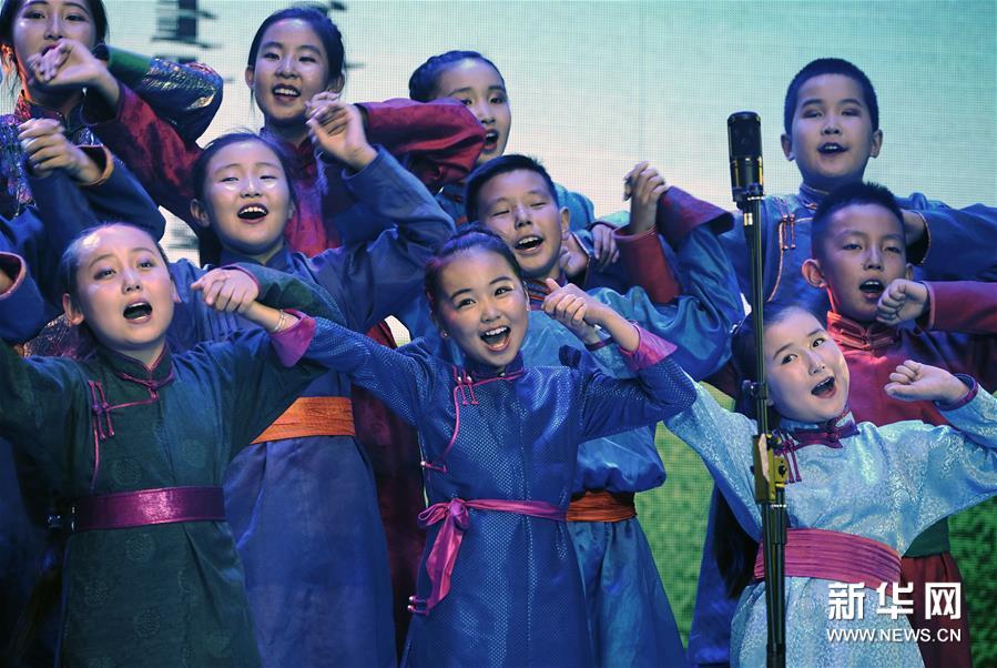 7月24日,在内蒙古苏尼特右旗影剧院举行的首届草原合唱节上,苏尼特右旗少儿合唱团成员演唱歌曲《共同心愿》。 当日,作为苏尼特右旗乌兰牧骑艺术节活动之一的苏尼特右旗首届草原合唱节在苏尼特右旗影剧院唱响。苏尼特之声合唱团、中国国际航空股份有限公司合唱团、苏尼特右旗少儿合唱团、中欧校友海棠花开合唱团四个合唱团参加表演。苏尼特右旗乌兰牧骑成立于1957年,多年来该团体先后创作出各类文艺作品2400多部,先后被授予“全国双服务先进乌兰牧骑”等光荣称号。 新华社记者 才扬 摄