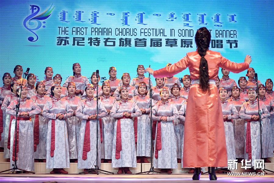 7月24日,在内蒙古苏尼特右旗影剧院举行的首届草原合唱节上,苏尼特之声合唱团成员演唱歌曲《军民团结一家亲》。 当日,作为苏尼特右旗乌兰牧骑艺术节活动之一的苏尼特右旗首届草原合唱节在苏尼特右旗影剧院唱响。苏尼特之声合唱团、中国国际航空股份有限公司合唱团、苏尼特右旗少儿合唱团、中欧校友海棠花开合唱团四个合唱团参加表演。苏尼特右旗乌兰牧骑成立于1957年,多年来该团体先后创作出各类文艺作品2400多部,先后被授予“全国双服务先进乌兰牧骑”等光荣称号。 新华社记者 才扬 摄