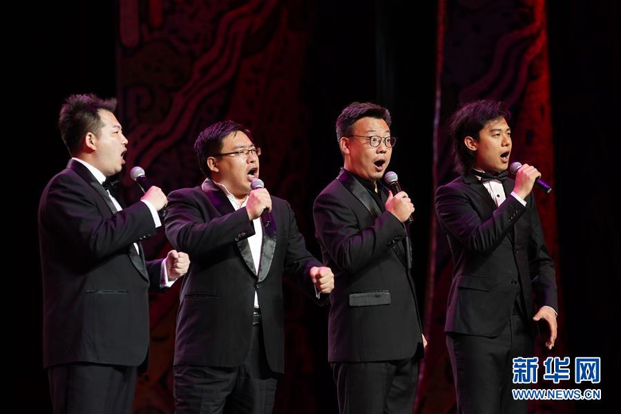 7月27日,中央歌剧院歌唱家在演唱歌曲。 当日,中央歌剧院在云南省迪庆藏区自治州香格里拉市开展“我们的中国梦——文化进万家”活动,艺术家们以文艺小分队的形式在当地开展大师课、慰问演出、文化交流等。 新华社记者 金良快 摄