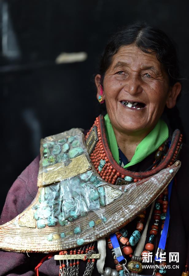 在西藏阿里地区普兰县科迦村,一名老人穿着古老的服饰(7月22日摄)。 在西藏阿里地区普兰县,至今保留着独特的藏族服饰——普兰服饰。普兰服饰已有1000多年的历史,其中最精美、最独特的是妇女的“孔雀服饰”。普兰县科迦村里有7户人家保存着7套祖传了几百年的服饰,一套重达25公斤,装饰有黄金、白银、松石、玛瑙、珊瑚、珍珠等珠宝,承载和沉淀着千百年的时光。 新华社记者 觉果 摄