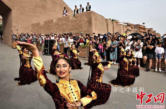 喀什是中国最西的城市。喀什居民以维吾尔族为主,是新疆最具有民族特色和代表性的城市,享有“不到喀什,不算到新疆”的美誉。喀什是闻名于世的歌舞之乡,维吾尔族和塔吉克族人是能歌善舞的民族,素有一出生就会唱歌,会走路就会跳舞。喀什古城,至今已有2000多年的历史,街巷纵横交错,布局灵活多变,是中国唯一的以伊斯兰文化为特色的迷宫式城市街区。图为2019年7月30日上午喀什老城区开城仪式迎接八方来客。工人日报-中工网许之丰摄影报道