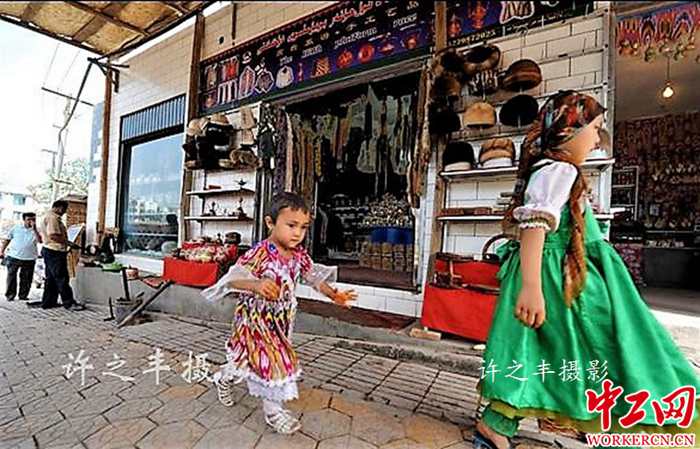 2019年7月30日走进新疆喀什高台民居,这里正在进行升级改造之中。拿出七年前兴旺时期的高台民居生活照片。高台民居地处喀什市老城东北端,建于高40多米、长800多米黄土高崖上的维吾尔民族聚居区,距今已有600年历史,房屋依崖而建,家族人口增多一代,便在祖辈的房上加盖一层楼,一代一代,房连房,楼连楼,层层叠叠,是喀什展示维吾尔古代民居建筑和民俗风情的一大景观。工人日报-中工网许之丰摄影报道