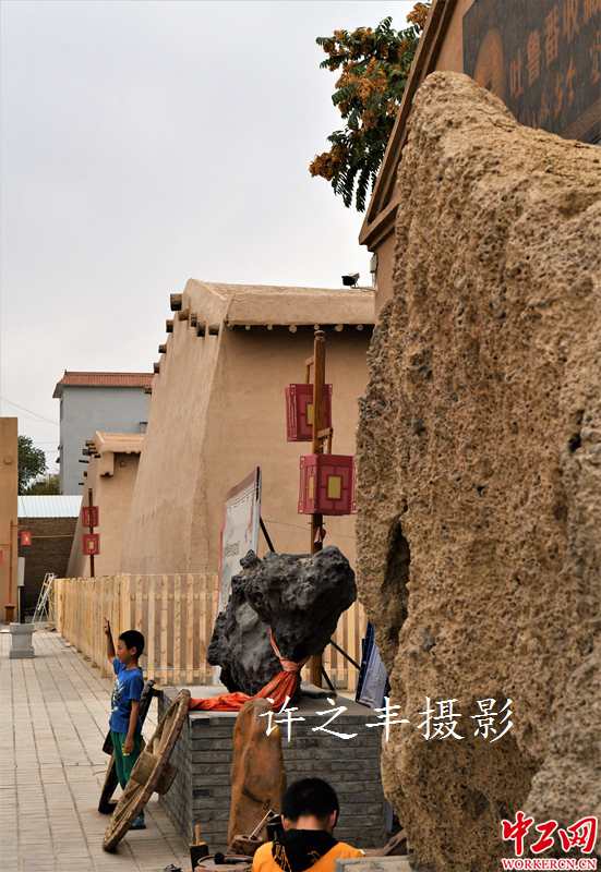 在新疆吐鲁番市有一座保存完好的清代粮仓。据史料记载,乾隆四十四年(1779)年在筑城同时,兴建这座占地23.2亩的军屯粮仓。粮仓为独特土木建筑结构,墙体用土坯砌成,基部宽度1.6米,上部约为0.9米,墙体上还开有40厘宽、69厘米长的通风小窗,由于粮仓墙体厚实,可隔热防水,且自然通风,所以能长期安全地储粮。图为2019年7月27日,新疆吐鲁番清代老粮仓遗址。工人日报-中工网许之丰摄影报道