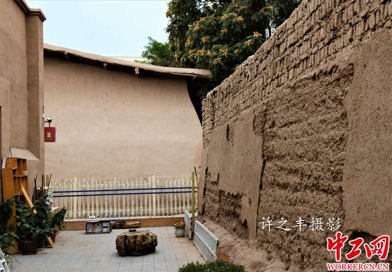在新疆吐鲁番市有一座保存完好的清代粮仓。据史料记载,乾隆四十四年(1779)年在筑城同时,兴建这座占地23.2亩的军屯粮仓。粮仓为独特土木建筑结构,墙体用土坯砌成,基部宽度1.6米,上部约为0.9米,墙体上还开有40厘宽、69厘米长的通风小窗,由于粮仓墙体厚实,可隔热防水,且自然通风,所以能长期安全地储粮。图为2019年7月27日,新疆吐鲁番清代老粮仓遗址。工人日报-中工网许之丰摄影报道