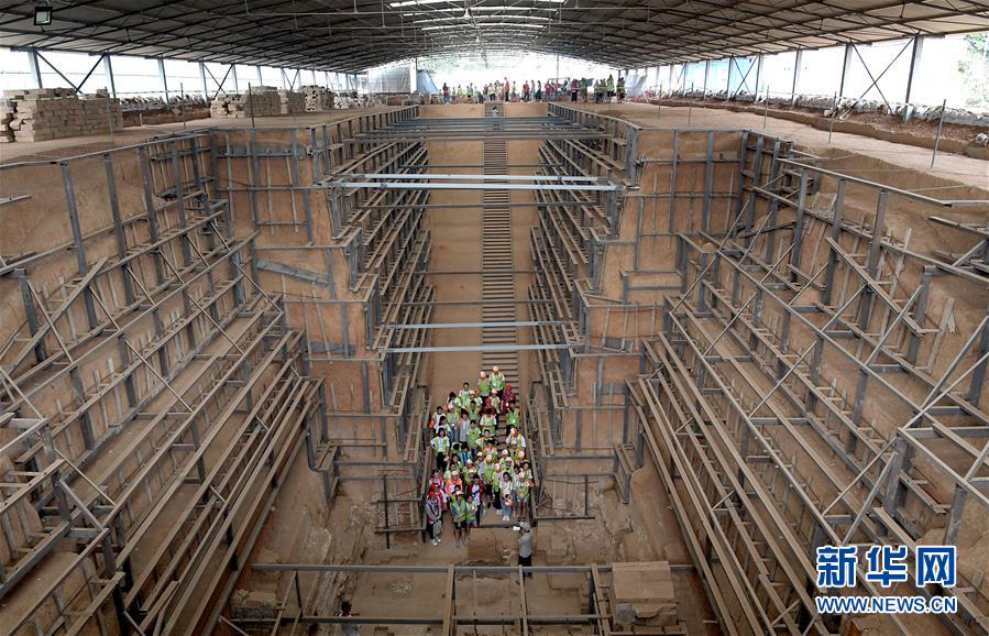 8月1日,洛阳市“我是小小考古家”夏令营的营员们在曹魏大墓考古工地参观。 当日,河南省洛阳市“我是小小考古家”夏令营的70余名营员走进曹魏大墓考古工地、洛阳市文物考古研究院文物保护修复中心,通过参观体验近距离感受真实的文物考古工作,领略古都洛阳厚重的历史文化。 新华社记者 李安 摄