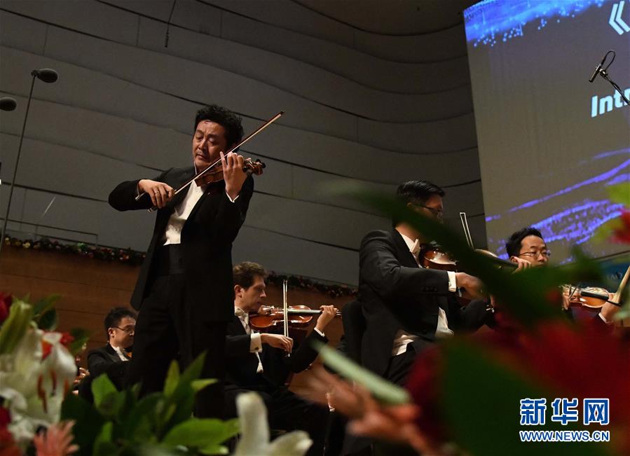 8月2日,小提琴家吕思清(前左)在开幕音乐会上演奏。 新华社记者 李紫恒 摄