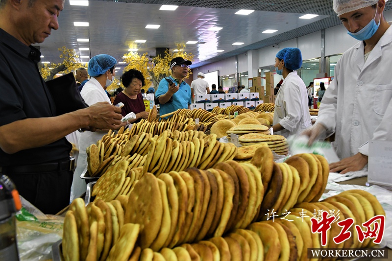 馕是新疆各族群众不可缺少的传统食品,也是维吾尔族群众日不可缺的面食之一。馕在新疆有五十多个品种,常见的有肉馕、油馕、窝窝馕、芝麻馕、胡萝卜馕、卷饼馕等。馕在新疆的历史也很悠久,在我国许多史料中都有记载。新疆自治区博物馆陈列的吐鲁番出土的唐朝的馕,在两千多年前,吐鲁番人就会做精细美味的馕。图为2019年8月2日乌鲁木齐馕文化园。工人日报-中工网许之丰摄影报道