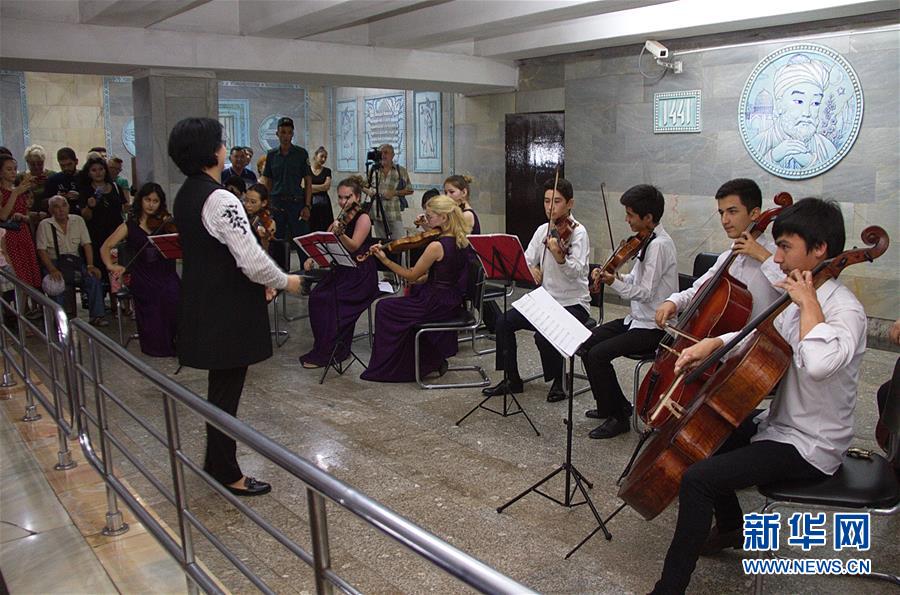 乌兹别克斯坦国家爱乐乐团2日在首都塔什干的地铁站内举办古典音乐会。