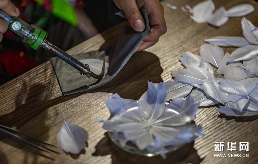 8月7日,张华在工作室制作羽毛画。 彝族姑娘张华出生在云南省石屏县龙朋镇,自幼爱好彝族刺绣,2009年开始学习羽毛画并逐渐掌握了这项技艺。2016年,为了能帮助更多的当地妇女,张华在石屏县文庙里建立了教学点,免费传授刺绣和羽毛画技术,随后在政府的支持下成立 “绣美彝山刺绣专业合作社”,让妇女们一边完成订单一边接受技能培训,同时利用互联网众筹资金扩大培训范围和经济效益,帮助越来越多的当地百姓脱贫致富。 新华社记者 江文耀 摄