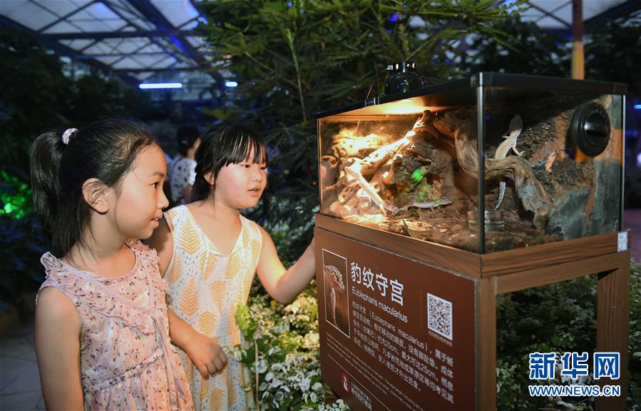 8月10日,小朋友在 “会发光的植物园——小动物奇妙夜”活动中参观。 7月5日至10月7日,“会发光的植物园——小动物奇妙夜”在北京南宫世界地热博览园五洲植物乐园举行。 据了解,本次活动共展出7个品类上百只小昆虫和14个品种40多只夜行动物,游客在游览的同时,还可以欣赏到小动物表演、荧光舞等。 新华社发(任超摄)