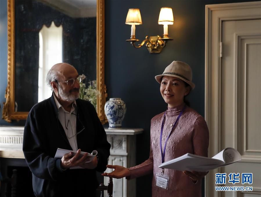 8月9日,在英国剑桥大学国王学院,一名诗人(左)与来自中国的播音员共同朗诵诗歌。 第五届剑桥徐志摩诗歌艺术节9日在剑桥大学国王学院拉开帷幕。百余位来自各国的诗人、艺术家和学者相聚于中国诗人徐志摩《再别康桥》笔下的康河畔,举办诵诗交流活动和艺术展。 新华社记者韩岩摄