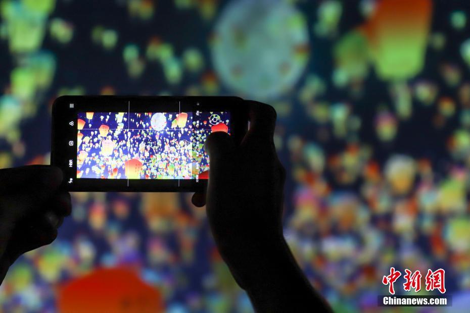 8月11日,游客在用手机拍摄“心语心愿”项目。当日,位于贵州贵阳天河潭旅游度假区的“梦中花·身外影”时尚灯光艺术展吸引众多市民和游客前来观展。据悉,本次艺术展览共有17个主题,通过灯光、图像等元素,让观展者置身光与影的炫彩世界中。中新社记者 瞿宏伦 摄