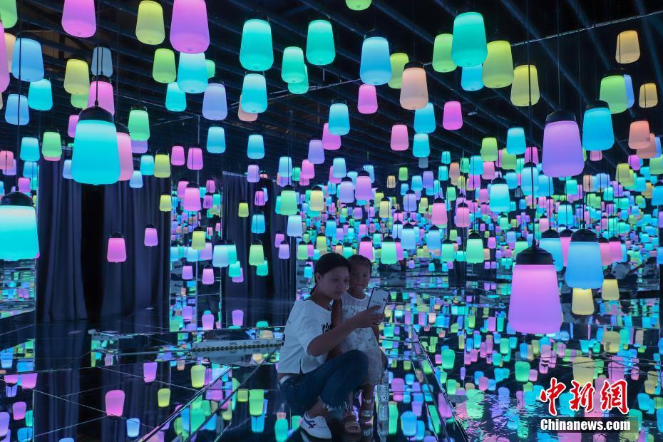 游客在“呼吸灯森林”项目中自拍。中新社记者 瞿宏伦 摄