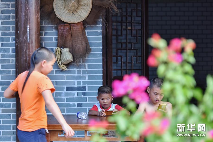 三名男孩在江西南昌安义县水南赣派小吃街上休闲纳凉(8月8日摄)。 安义千年古村群位于江西省南昌市安义县石鼻镇境内,距今已有1400多年历史,由罗田、水南、京台三个村落组成,是典型的赣商文化古村落。目前,古村群保留有120多栋相对完整的明清古宅,先后被评为中国历史文化名村、全国农业旅游示范点、江西十大最美乡村之一。 2017年8月,当地引进企业对千年古村群进行整体规划建设与运营管理。目前,安义千年古村群已初步建成集赣文化与赣商文化体验、旅游休闲于一体的文化旅游村落。2018年,古村共接待游客近20万人次,村民人均纯收入从2015年的千元左右,提高到2018年底的万元左右,古村焕发新生机,带动了村民增收。 新华社记者 李芒茫 摄