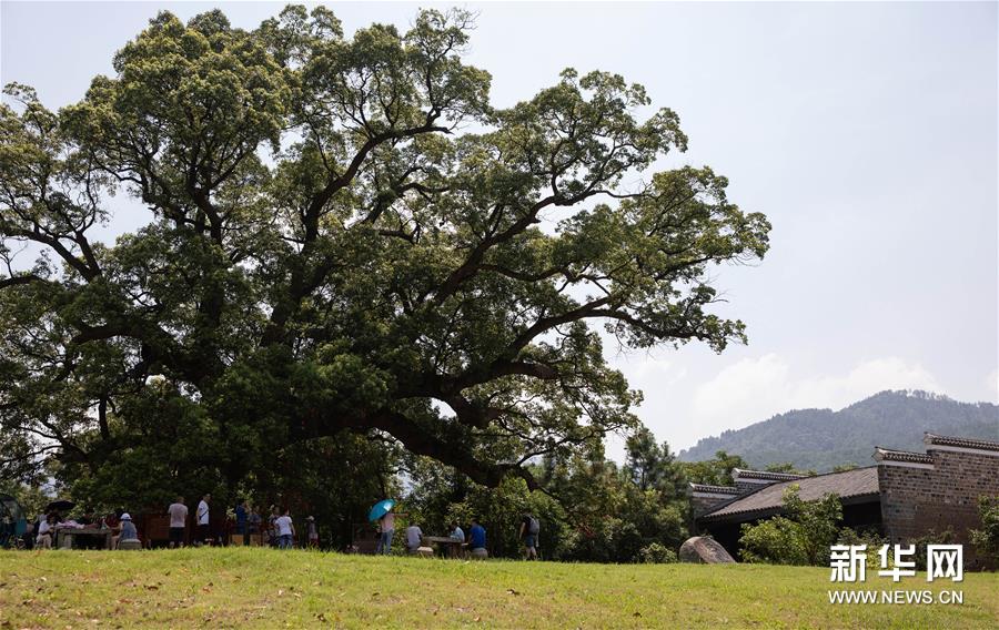 这是江西省安义县古村落罗田村的千年古唐樟(8月8日摄)。 安义千年古村群位于江西省南昌市安义县石鼻镇境内,距今已有1400多年历史,由罗田、水南、京台三个村落组成,是典型的赣商文化古村落。目前,古村群保留有120多栋相对完整的明清古宅,先后被评为中国历史文化名村、全国农业旅游示范点、江西十大最美乡村之一。 2017年8月,当地引进企业对千年古村群进行整体规划建设与运营管理。目前,安义千年古村群已初步建成集赣文化与赣商文化体验、旅游休闲于一体的文化旅游村落。2018年,古村共接待游客近20万人次,村民人均纯收入从2015年的千元左右,提高到2018年底的万元左右,古村焕发新生机,带动了村民增收。 新华社记者 江宏景 摄