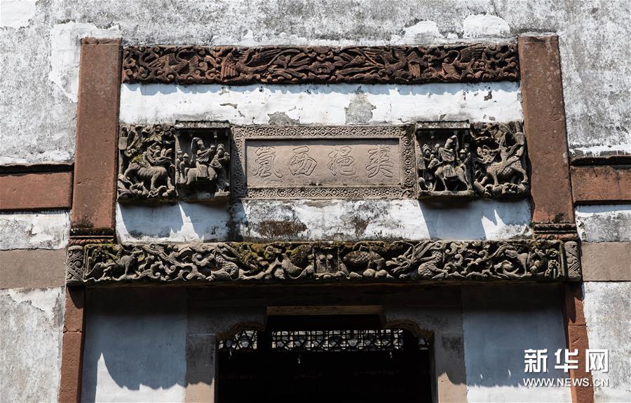 在江西省安义县古村落罗田村拍摄的士大夫第宅院里门楼上的精美砖雕(8月8日摄)。 安义千年古村群位于江西省南昌市安义县石鼻镇境内,距今已有1400多年历史,由罗田、水南、京台三个村落组成,是典型的赣商文化古村落。目前,古村群保留有120多栋相对完整的明清古宅,先后被评为中国历史文化名村、全国农业旅游示范点、江西十大最美乡村之一。 2017年8月,当地引进企业对千年古村群进行整体规划建设与运营管理。目前,安义千年古村群已初步建成集赣文化与赣商文化体验、旅游休闲于一体的文化旅游村落。2018年,古村共接待游客近20万人次,村民人均纯收入从2015年的千元左右,提高到2018年底的万元左右,古村焕发新生机,带动了村民增收。 新华社记者 江宏景 摄