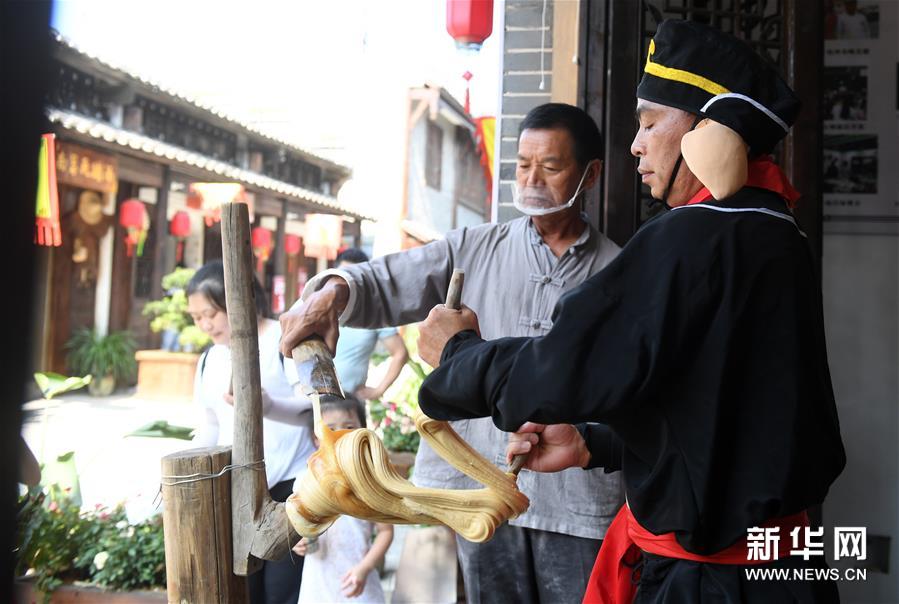 在江西省安义县石鼻镇水南村,一家商铺员工在制作“状元糖”准备销售(8月8日摄)。 安义千年古村群位于江西省南昌市安义县石鼻镇境内,距今已有1400多年历史,由罗田、水南、京台三个村落组成,是典型的赣商文化古村落。目前,古村群保留有120多栋相对完整的明清古宅,先后被评为中国历史文化名村、全国农业旅游示范点、江西十大最美乡村之一。 2017年8月,当地引进企业对千年古村群进行整体规划建设与运营管理。目前,安义千年古村群已初步建成集赣文化与赣商文化体验、旅游休闲于一体的文化旅游村落。2018年,古村共接待游客近20万人次,村民人均纯收入从2015年的千元左右,提高到2018年底的万元左右,古村焕发新生机,带动了村民增收。 新华社记者 陆波岸 摄