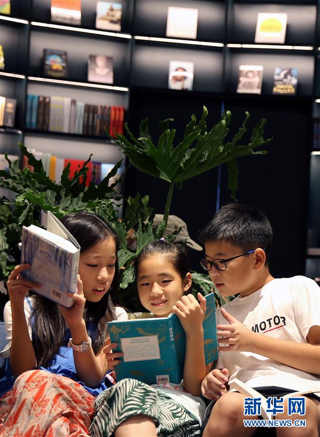 8月12日,读者在朵云书院内读书。 当日,位于上海中心大厦52层的朵云书院正式开业。在离地239米的空中、2000多平方米的空间内,朵云书院售卖16000多种、6万多册中外书籍。书店集阅读、艺术展览、品牌文创、社交休闲等多功能于一体,拥有独特的空中视野和“抬头看云、低头看书”的阅读环境。 新华社记者 刘颖 摄