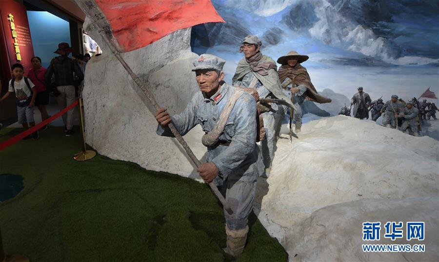 8月12日,游人在六盘山红军长征纪念馆内观看“红军过雪山”的模拟场景。 新华社记者 罗晓光 摄