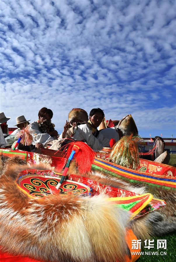 在西藏那曲市赛马节上拍摄的男式“天线帽”(8月10日摄)。 西藏藏北安多县牧民有戴“天线帽”的传统,“天线帽”传统上由羊羔皮、狐狸皮等缝制,现多为羊羔皮及人造皮缝制。不论男女所戴的“天线帽”顶上都有一根类似天线的条状彩线编织物竖起。 新华社记者 觉果 摄