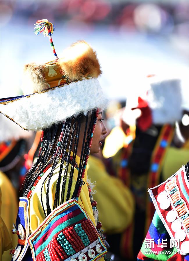在西藏那曲市赛马节上拍摄的戴“天线帽”的西藏安多妇女(8月10日摄)。 西藏藏北安多县牧民有戴“天线帽”的传统,“天线帽”传统上由羊羔皮、狐狸皮等缝制,现多为羊羔皮及人造皮缝制。不论男女所戴的“天线帽”顶上都有一根类似天线的条状彩线编织物竖起。 新华社记者 觉果 摄