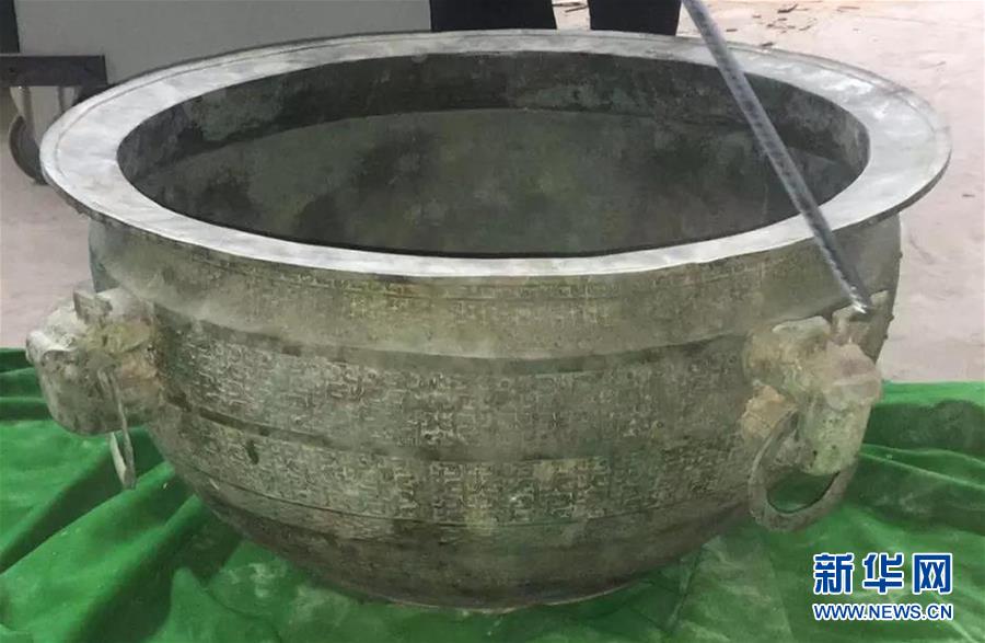 图为被截获文物“鉴盆”(8月8日摄) 。 近日,兰州市公安局协助山西省警方侦破一起文物倒卖案件,涉案文物名为“鉴盆”,系西周晚期青铜器。 新华社发 (兰州市公安局新闻办 供图)