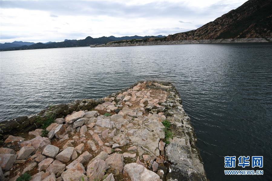 这是露出水面的“水下长城”部分城墙(8月13日摄)。 日前,位于河北省宽城满族自治县境内的潘家口水库蓄水量减少,水库内一段“水下长城”再次露出水面,景色壮美。 这段水下长城是明长城的遗址,20世纪70年代因建设水利枢纽工程,潘家口水库下闸蓄水,部分长城隐没水下,从而形成“水下长城”奇观。 新华社记者 巩志宏 摄